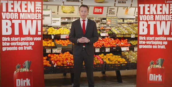 De afgelopen jaren zijn gezonde producten veel harder in prijs gestegen dan ongezonde producten, bleek onlangs nog, wat het kiezen voor gezond er niet makkelijker op maakt, met name voor mensen met een kleine beurs. Supermarktketen Dirk schaart zich actief bij de pleitbezorgers voor btw-verlaging en startte eind februari een campagne die pleit voor een btw-verlaging van 9% naar 6%. Inmiddels zijn hiervoor ruim 52.000 handtekeningen opgehaald, die komende dinsdag 8 juni aan Judith Tielen, voorzitter van de commissie Financiën in de Tweede Kamer worden overhandigd.