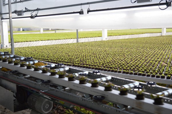 Ook slateler Leonard Boer heeft heel wat testen met belichting gedaan. De reden was hier een verhuizing naar een nieuwe kas in Dinteloord. Daar kweken de telers onder 7 kappen in een speciale opkweekruimte van 4000 vierkante meter op twee lagen hun diverse soorten sla op. De onderste laag is nagenoeg daglichtloos en dus zochten de telers hier naar zonlicht. “Iedereen kan vandaag de dag alles maken met belichting, maar dat maakt het nog niet direct ook zonlicht, zo bleek toen we in onze testcontainer met een spectrummeter gingen testen. In de verhoudingen tussen de kleuren zit hem de crux.”