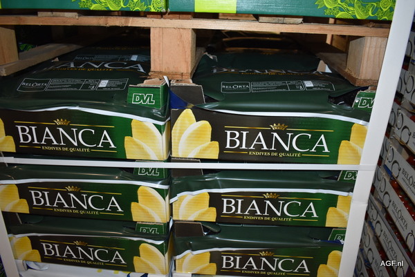 “Hier in Sint-Katelijne-Waver zitten we op een steenworp afstand van de veiling. Hierdoor kunnen de vrachtwagens van DVL om 1 uur ‘s middags naar de klanten in Zuid-Frankrijk vertrekken. DVL levert voornamelijk aan groothandels, die willen hun producten om 3 uur ’s nachts geleverd hebben. In het hoofdseizoen, in de zomer, vertrekken er zo’n zes wagens per dag naar het Zuiden. Voor deze klanten is de prijs van minder belang dan de kwaliteit. Daarom werken we met de beste producten, zowel uit België als Nederland. Daarnaast werken we rechtstreeks samen met telers. We selecteren onze telers zorgvuldig op de beste kwaliteit. We hebben ook een eigen merk: Bianca. Momenteel voeren we enkel witloof onder dit merk, maar we willen Bianca ook uitbreiden voor andere producten”, vervolgt Dominiek.