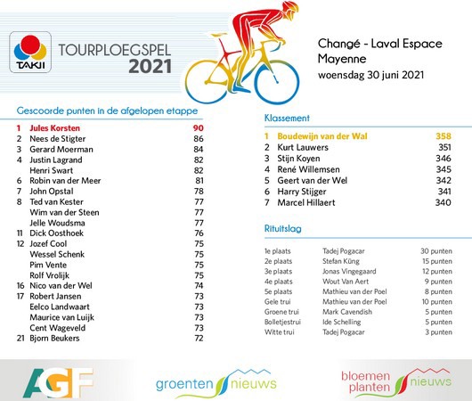 De dagzege in het Takii Tourploegspel is voor Jules Korsten. Hij had met Stefan Küng ook de nummer 2 in de daguitslag in zijn team.