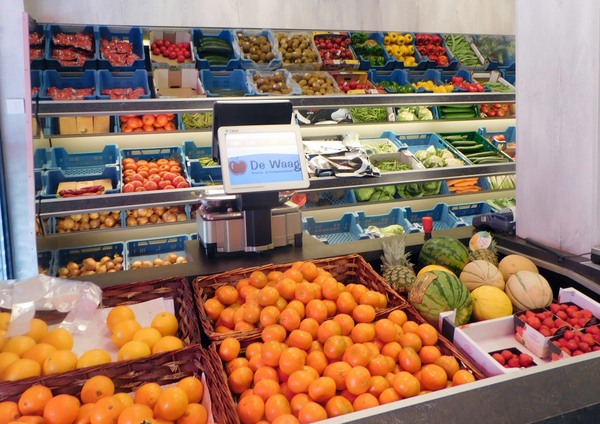 De Waag ligt tegen de Duitse grens aan de hoofdstraat met voldoende parkeergelegenheid. Normaal gesproken is er veel toerisme uit Duitsland, maar door corona was dat een stuk minder. Dat was niet van invloed op de omzet, integendeel zelfs, vertelt Marianne. “We hebben een hele fijne trouwe klantenkring, veel komen hun weekboodschappen doen. Sommige klanten rijden wel 20 minuten om hier te komen. Daarnaast bezorgen we in de regio een aantal grotere bedrijven. We maken ook heel veel fruitmanden.”