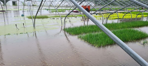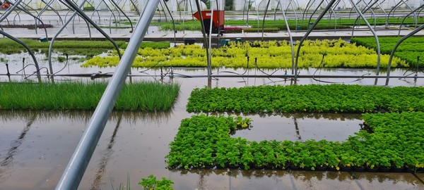Een deel van het containerveld van biologische kruidenkwekerij Puur Aroma in Margraten is onder water komen te staan. “De brandweer heeft gisterenavond een groot deel van het water voor ons weggepompt. De rest is van nature weggetrokken. Hoger gelegen delen van de kwekerij zijn gelukkig niet ondergelopen”, vertelt Frank Radder. "Het is niet voor te stellen hoeveel regen er is gevallen en hoe het er nu bij staat. Echt een ongekende situatie. In Valkenburg dreven de auto's door de straat."