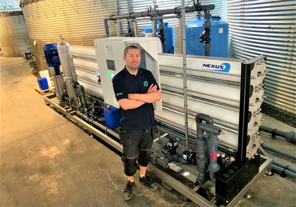 "We hebben het systeem in de winter van 2020 geïnstalleerd en daarna gebruiken we bijna geen leidingwater meer en kunnen we meer drainwater gebruiken dan voorheen, ruwweg 50%. Met de high performance RO gebruiken we minder bronwater t.o.v. een conventionele RO, wat goed is voor het milieu, kosten en afschrijving van de investering," zegt Simon.