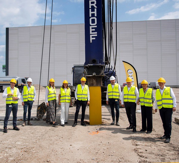 De start van de bouwactiviteiten voor dit nieuwe pand is woensdagmiddag 21 juli met een kleine ceremonie op bedrijventerrein De Liesbosch ingeluid. Karel de Jong, directeur Supply Chain, sloeg symbolisch de eerste ‘gele’ paal, in aanwezigheid van de familie van Eerd en de Raad van Bestuur van Jumbo.