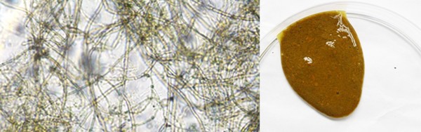 Organisch materiaal kan gaan over schimmeldraden, bacteriƫn, resten van organisch plantmateriaal, algen en wieren of zelfs aaltjes en watervlooien.