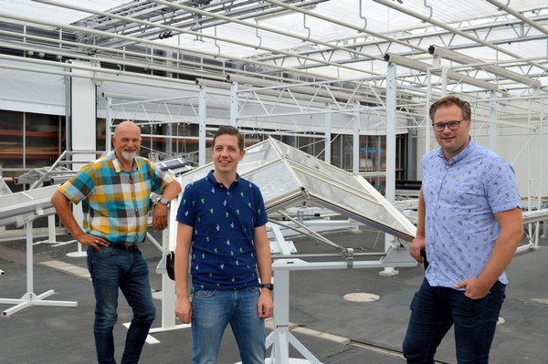Het driekoppige directie in de demokas bij het kantoor van Looije Agro Technics, waar een breed assortiment tuinbouwtechnieken te zien is. Handig voor telers die een keuze moeten maken.