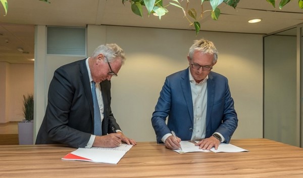 Ondertekening contract door Bas Hidding, voorzitter raad van bestuur Flynth adviseurs en accountants en Edwin Rijsterborgh, directeur Rijsterborgh Vastgoed.