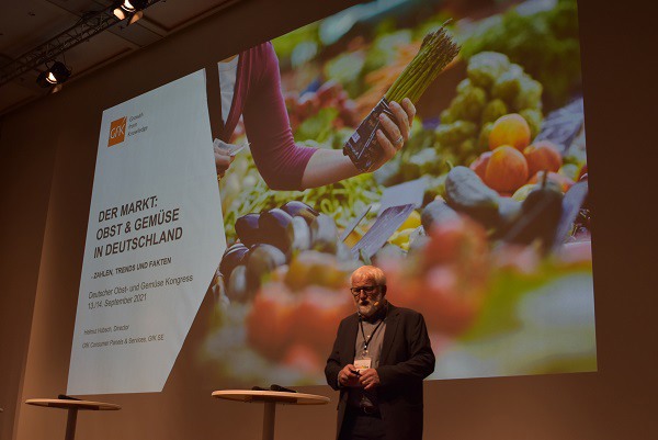 Helmut Hübsch van GfK presenteerde op het Duitse groenten- en fruitcongres (DOGK) actuele cijfers en prognoses voor het jaar 2021. Terwijl de thuisconsumptie in 2020 vanwege de lockdown sterk gestegen is, nam de consumptie buitenshuis juist af. Zo lag het aandeel aan de totale omzet in de buitenshuisconsumptie in 2019 nog op 40%, terwijl dat percentage afgelopen jaar slechts 33% bedroeg.