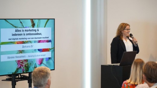 Alles is marketing en iedereen is ambassadeur, zo luidde de titel van haar presentatie en dat is ook precies wat Berkvens BV doet. De collega’s binnen de organisatie meenemen in de ontwikkelingen, samenwerken naar een gezamenlijke ‘north star’ en de collega’s een podium geven in de externe communicatie, want zij zijn het merk.