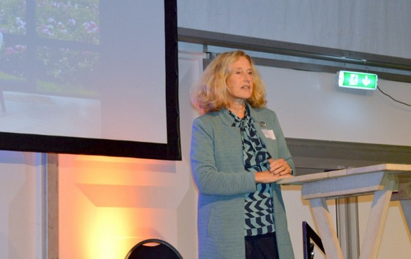 Adri Bom-Lemstra, voorzitter Glastuinbouw Nederland, heeft, net als haar voorgangers, ook vaart in haar presentatie. Ze benadrukt dat innovatie en onderzoek daarna onlosmakelijk verbonden is met het behouden van de Nederlandse voorsprong. Ze doet daar nog een schepje bovenop: “Ik gun de wereld dat Nederland leading is én blijft.”
