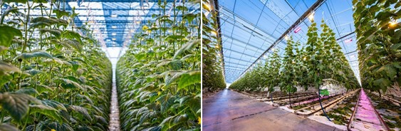 Hij runt al bijna 35 jaar met zijn vrouw Marlies zijn bedrijf in Maasbree. “We hebben twee aparte teeltsystemen: hogedraadteelt met belichting van 110 micromol en een afdeling traditionele teelt. Sinds dit jaar doen we ook in de belichte hogedraad drie teelten per jaar. Dat levert een besparing van arbeid op en een betere verdeling. De hogedraadteelt is een flinke investering, maarde energie-input per komkommer is veel gunstiger geworden dus is het een interessant plaatje geworden.”