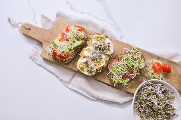 Afhankelijk van of het om horeca of retail gaat, zet Van der Plas Sprouts een aantal ‘meest gangbare soorten’ af. In het retaillandschap gaat het dan vooral om taugé, alfalfa en dikwijls daarnaast nog een kiemgroentetrio met daarin radijskiemen in de kleuren geel, groen of paars en naar de wens van de supermarktketen met kiemen van rode kool en broccoli. In de horeca zijn het dan weer de, zoals Eva het noemt ‘specialere soorten’, zoals kiemen van prei, asperge. Recent is hier ook de vraag naar kiemen van knoflook flink gestegen. Zeker is dat alle soorten in vergelijking met hun grote broers en zussen opvallend veel vitaminen en mineralen bevatten.