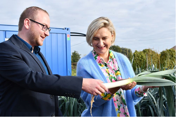 De teelt van prei, één van de belangrijkste groenteteelten in openlucht in Vlaanderen, wordt geconfronteerd met structurele uitdagingen. De vraag van telers naar een toekomstgericht teeltsysteem klinkt dan ook steeds luider. In samenwerking met REO Veiling startte Inagro enkele jaren geleden met onderzoek naar de mogelijkheden om prei te telen op dragers, uit de grond en in hydrocultuur. Dat onderzoek kwam het voorbije jaar in een stroomversnelling dankzij de opbouw van een professionele pilootinstallatie op de site van Inagro. “Dankzij de samenwerking tussen onderzoek, de tuinbouwsector en industriële partners zetten we nu, met de steun van VLAIO, belangrijke stappen naar automatisatie van de oogst en professionalisering van de teelttechniek van prei op dragers”, zegt Vlaams minister van Landbouw en Voeding Hilde Crevits die vandaag een bezoek bracht.