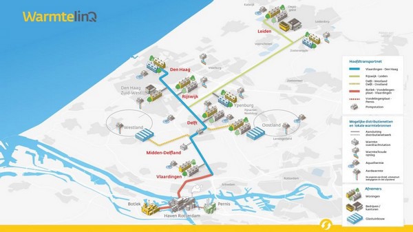 Het ministerie van Economische Zaken en Klimaat en Gasunie hebben vandaag het definitieve investeringsbesluit genomen voor de aanleg van een warmteleiding van de Rotterdamse haven naar Den Haag. Eneco zal als eerste warmtebedrijf warmte afnemen uit dit transportnet en leveren aan woningen in Den Haag. Het warmtetransportnet biedt voldoende capaciteit om op termijn meer woningen, bedrijven en glastuinbouw langs het tracé van Rotterdam naar Den Haag van warmte te voorzien.
