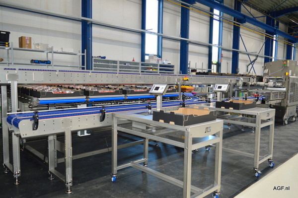 Complete lijn voor het wegen, transporteren en verpakken van druiven