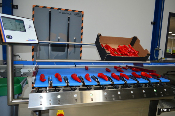 Weegunit voor puntpaprika’s in combinatie met een Redpack Box-Motion bovenseal flowpacker