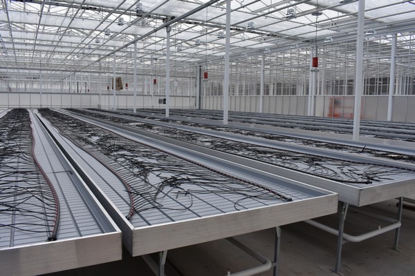 Het nieuwbouwproject meet 2.2 hectare en bestaat uit 28 afdelingen kas, verwerkingsruimten, kantine, laboratoria en spreekruimtes. De watertechnische ruimte, zo weet installateur Royal Brinkman, ‘is uitvoerig en zeer divers door de grote variatie in teeltsystemen; van druppelbevloeiing op teelttafels, een bovenberegeningsinstallatie, een hogedruknevelinstallatie tot eb- en vloedinstallaties op betonvloeren en teelttafels.’ Er is een dubbel watersysteem en afvoersysteem aangelegd, water wordt ontsmet met UV en wordt verrijkt met zuurstof door twee Moleaer nanobubbelinstallaties. Er komt geen ketel, de verwarming is aangesloten op de bestaande verwarming van Deliflor.