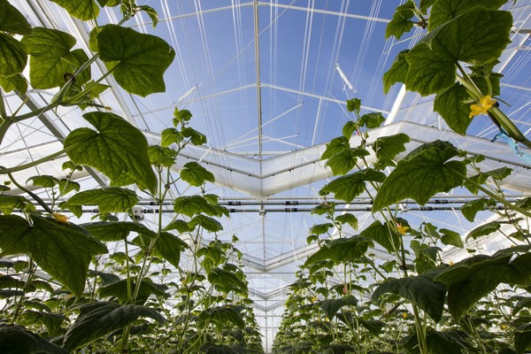 Komkommerteelt in de Winterlichtkas van de WUR in Bleiswijk