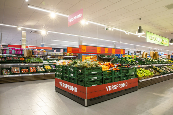 "Verder hebben we eind dit jaar een nieuwe winkelinrichting geïntroduceerd bij onze nieuwe en vernieuwde winkels waarbij het versaanbod (verse groenten en fruit, vers vlees, verse vis en chilled convenience) een prominente plaats krijgt vooraan de winkel. We willen een echte versmarktbeleving creëren. Het eerste wat onze klanten tegen het lijf zullen lopen bij het betreden van een nieuwe winkel is ons assortiment verse groenten en fruit waarbij we de wekelijkse verspromo’s presenteren op een afzonderlijk eiland. Vele mensen stemmen hun boodschappen af op onze verspromo’s waardoor ze dit al meteen kunnen inladen en geen tijd verliezen. Tegen het einde van het jaar zullen een 10-tal winkels ingericht zijn volgens deze versmarktbeleving. Volgend jaar staan er al meer dan 30 nieuwe of vernieuwde winkels op de planning die volgens deze inrichting zullen openen."