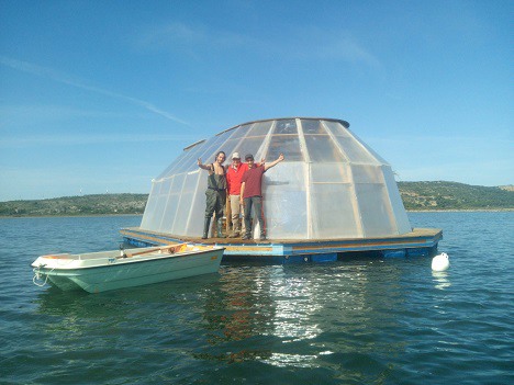 Met behulp van de drijvende constructie, gebouwd in het departement Aude in 2020, kunnen groenten, fruit, jonge scheuten, veevoer, bloemen, algen en vissen worden gekweekt, zonder meststoffen en/of gewasbeschermingsmiddelen.
