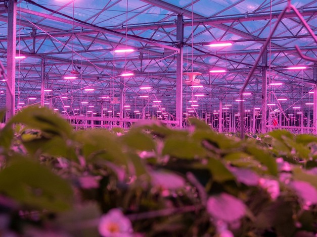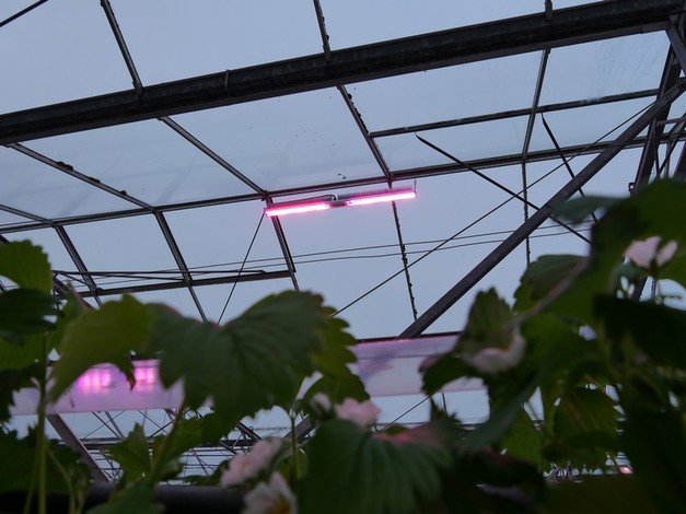 Ook bij aardbeien bleek het gebruik van belichtingsstrategieën belangrijker dan alleen de focus op de hoogste output voor het laagste energieverbruik. "Niet het meeste licht, maar het juiste licht kan telers helpen om in slechts drie weken 35% extra productie te realiseren. Het verschil is enorm, en zeker bij de aardbeienteelt in de winter is het van levensbelang om op het juiste moment in productie te zijn. Je kunt tot 40% van je omzet halen als je het goed doet en je het licht gebruikt om eerder te beginnen met oogsten." Met de juiste lichtstrategie kunnen telers de tijd tussen zaaien en de eerste oogst verkorten. "In je eerste productiepiek ben je dan de enige op de markt, want jij kan al oogsten terwijl anderen nog moeten wachten."