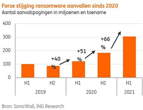 In 2021 zijn er in de media 168 cyberincidenten bekend geworden. Dat is nog maar het topje van de ijsberg. Veel cyberaanvallen draaien om ransomware of gijzelsoftware. Hierbij nemen hackers de controle over van data of IT-infrastructuur van een bedrijf. Zij blokkeren de toegang met behulp van encryptie totdat losgeld is betaald. In veel gevallen wordt data ook gestolen, zogenoemde double extortion. Recent waren naast MediaMarkt ook Colonial Pipeline, JBS Foods, RTL Nederland, Mandemakers, VDL, Universiteit Maastricht en honderden andere bedrijven en instellingen slachtoffer. Naast ransomware kan er ook sprake zijn van economische spionage. Dat is gericht op het stelen van bedrijfsgeheimen zoals intellectueel eigendom. Dit bedreigt het langetermijnverdienvermogen van bedrijven. Sinds 2020 stijgt het aantal gijzelsoftware aanvallen sterk. Conclusie: 100% veilig bestaat niet. Maar je kunt wel veel doen ter voorkoming van een cyberaanval.