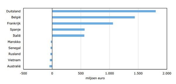 Ook in absolute cijfers behoren deze nabije markten tot de 5 grootste groeiers: Duitsland (+1,8 miljard euro), België (+1,4 miljard), Frankrijk (+1,1 miljard), Spanje en Italië (beide +0,6 miljard). Vooral de goede prestatie van België, met (zoals hierboven reeds aangegeven) een beperkte binnenlandse markt van 11 miljoen, springt in het oog. Deze groeicijfers zijn daarnaast vooral toe te schrijven aan producten van Nederlandse makelij en slechts in beperkte mate aan de doorvoerfunctie van Nederland. In totaal is België als exportmarkt voor de Nederlandse agrofood belangrijker dan China, Italië en Spanje samen.