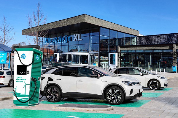 Nog dit jaar worden er 240 elektrische laadplekken bij winkels geplaatst waar klanten hun auto kunnen opladen. Deze energie is volledig duurzame stroom en afkomstig van Hollandse windenergie.