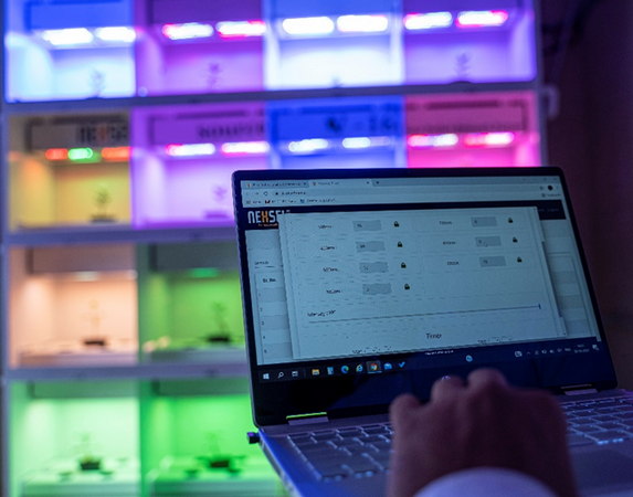Daarnaast hebben Vishal en Nexsel een nieuwe kweekruimte ontwikkeld. "Dit hebben we gedaan om onderzoek te kunnen doen," vertelt hij. "Deze kweekruimte bestaat uit 16 kamers, waarbij voor elke ruimte elke parameter apart kan worden ingesteld. Je kunt dus een bepaald spectrum instellen om te zien hoe de planten daarop reageren of verschillende spectra instellen boven dezelfde planten om het verschil in groei te kunnen zien. Op basis hiervan kunnen we onze lichtrecepten verfijnen en telers voorzien van een echt alomvattende oplossing."