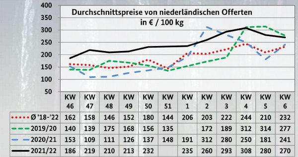 De stijgende aanvoer uit Nederland resulteerde vorige week in lichte prijsdruk, al liggen de prijzen nog steeds op een hoog niveau zo blijkt uit een nieuwe BLE-update.