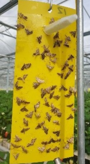 De volwassen motten van de Duponchelia fovealis veroorzaken geen schade. De rupsen echter des te meer. Er zijn behoorlijk wat gewassen waar de Duponchelia fovealis voor problemen kan zorgen. Vaak zijn het siergewassen, zoals gerbera, alstroemeria, roos en diverse potplanten waar we regelmatig aanzienlijke schade zien. De rupsen van de motten kunnen echter ook in aardbei en paprika behoorlijk huishouden. Tijdig signaleren voorkomt problemen, adviseert HortiPro dat inzet op het lokken van motten met speciale feromonen naar deltavallen en/of vangplaten.