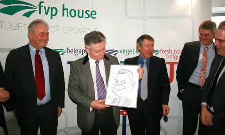 Karel De Gucht wenste FVPhouse met zijn drie belangrijke beroepsfederaties veel succes toe in de lichte en luchtige nieuwe burelen in Berlare waarna hijzelf, samen met burgemeester Katja Gabriëls en de voorzitters van Belgapom (Antoon Wallays), Vegebe (Dirk Decoster) en Fresh Trade Belgium (Frank Van Colenberghe) het lint doorknipten en de burelen officieel voor geopend verklaarde.