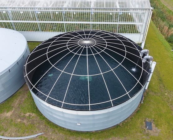 2 SiloDomes met een doorsnede van 11,83 en een hoogte van 4,64 meter.” Albers Alligator heeft samen met Buwatec de Alligator SiloDome en BUWADome ontwikkeld.