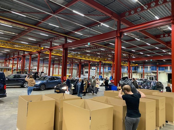 Vanuit het logistiek centrum van de kassenbouwer geeft ze al lopend een update. "We zijn afgelopen woensdag begonnen en hebben twee inzamelingsavonden gehouden. Donderdagavond zaten we al op 50 kuub dozen vol met kleding, warme dekens, babymelk, medicijnen en ga zo maar door."