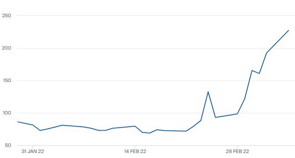 Ook los komen van Russische olie is niet eenvoudig. Het gat dat valt laat zich niet eenvoudig vullen. De verwachting van specialisten is daarom dat de olieprijs nog wel even door zal stijgen, schrijft de NOS. Mogelijk zelfs tot boven de 300 dollar. Bekijk de olieprijzen hier.