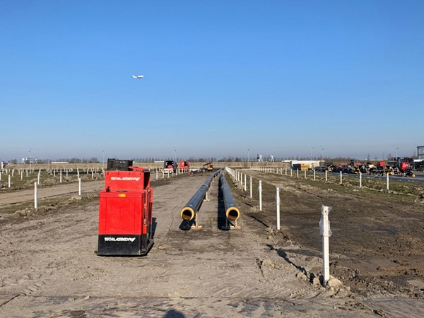 Hij begint dichtbij huis, in De Lier. Daar bouwt Rijk Zwaan momenteel 1,35 hectare kas. De kas is inmiddels glasdicht en dus kan VB aan de slag. “We doen al jaren alles voor Rijk Zwaan op haar locaties in De Lier. Bij dit project gaat het om een kas zonder apart ketelhuis. De kas koppelen wij op een bestaand ketelhuis van een nabijgelegen kas van Rijk Zwaan. Ook maken we een koppeling met het twee jaar geleden opgeleverd project van 10 hectare. Daarvoor is in week 8 een koppelleiding geboord, onder een kas door, die twee locaties verbindt. Hierdoor heeft Rijk Zwaan haar kassen nu in clusters gekoppeld en vormen de kassen straks allemaal één groot warmtenet. Bovendien zijn twee locaties ook al klaargemaakt voor aansluiting op het aardwarmtenet van Trias Westland.”