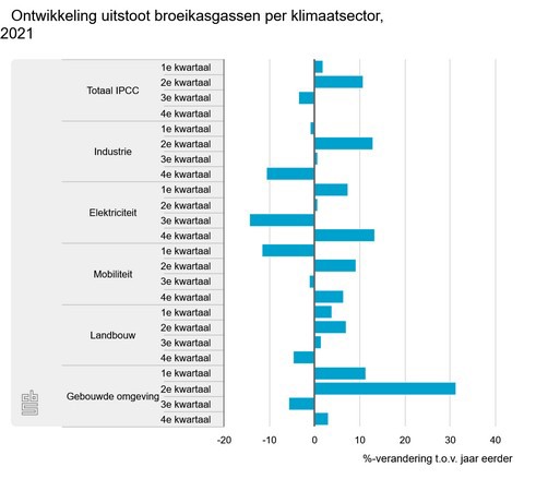 De stijging van de emissies in 2021 komt vooral door meer aardgasverbruik in de gebouwde omgeving. In het eerste halfjaar van 2021 was het kouder dan een jaar eerder. Dit blijkt uit een eerste raming van het CBS en het RIVM/Emissieregistratie over de uitstoot van broeikasgassen in 2021 volgens de IPCC-richtlijnen.