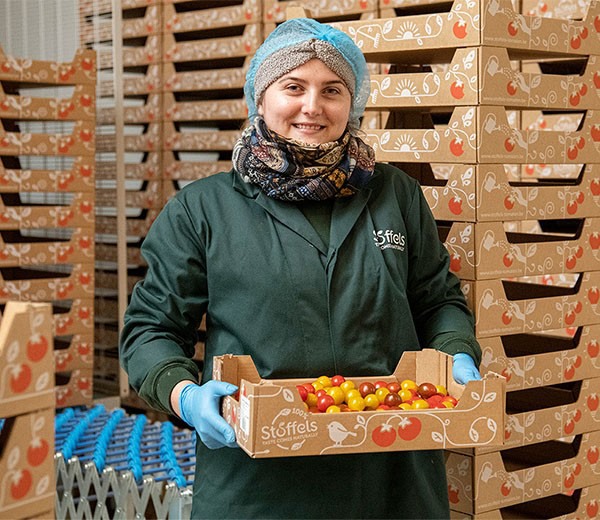 Stoffels Tomaten en verpakkingsproducent DS Smith verduurzaamden onlangs het verpakkingsontwerp en de logistiek rondom de aanlevering van tomatentrays. De nieuw gestandaardiseerde verpakking is geoptimaliseerd qua vezelgebruik en heeft minder karton nodig. Door de installatie van een automatische opzetmachine kunnen de trays plat aangeleverd worden, wat ruimte in de vrachtwagen bespaart.