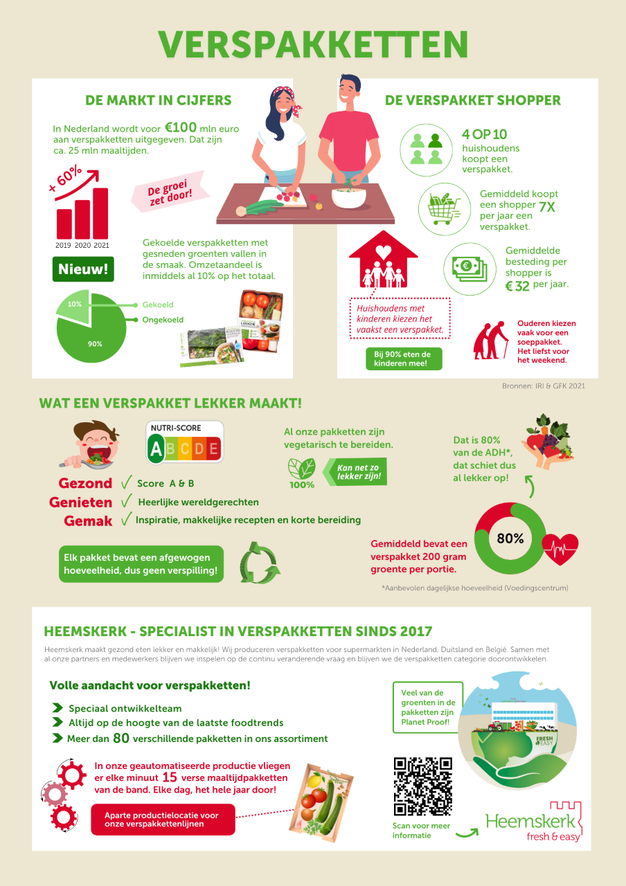 Afgelopen dinsdag sprak Jaap-Jan van Zwet, Trade Marketeer Heemskerk fresh & easy, over de visie en de drivers van Heemskerk achter het succes van verspakketten tijdens het AGF Trendcafé. Benieuwd geworden naar hoe deze markt eruitziet, wie de shopper is en wat het succes is achter verspakketten? Heemskerk heeft het voor je weergegeven: