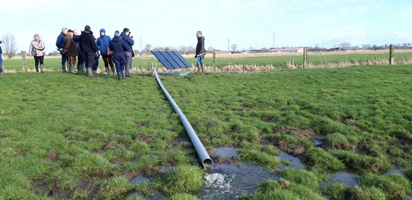 Om de NPI-steun nog breder kenbaar te maken, plannen de projectpartners in 2022 regelmatig demonstraties over één of meerdere NPI-maatregelen. “De bedoeling is om telkens concreet en actief aan de slag te gaan met de maatregelen in de praktijk”, verduidelijkt Stefaan Serlet. Zo vonden deze winter al twee demonstraties plaats. In februari werd de plaatsing van een plas-draspomp gedemonstreerd op een perceel weiland in Brugge ter versterking van weidevogelgebieden. In maart volgde een demonstratie over beplanting en waterinfiltratie op een gemengd veeteeltbedrijf in Oedelem.