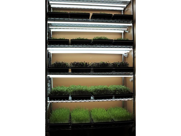 "Dankzij het aquaponic-systeem beginnen we onze teelt van bladgroenten te verhogen, maar op het moment telen we in onze ruimte voor microgreens tot het voorjaar aanbreekt," zegt Rheece. "Als het voorjaar is aangebroken, zullen we meer bladgroenten buiten in ons aquaponic-systeem gaan produceren."