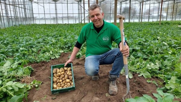 Tholen - Nog nooit waren de eerste Nederlandse aardappelen zo vroeg en nog nooit kwamen deze uit Gelderland, weet Ferdinand Eeuwes van De Groene Schuur. Hij haalde afgelopen vrijdag 1 april zijn in januari gepote aardappelen uit de grond. Hij is trots op zijn prestatie: "De aardappelen zijn maar liefst 20 dagen eerder dan anders, dat is nog nooit gepresteerd. En altijd komen ze uit de andere kant van het land, nog nooit uit deze kant van het land", vertelt hij.