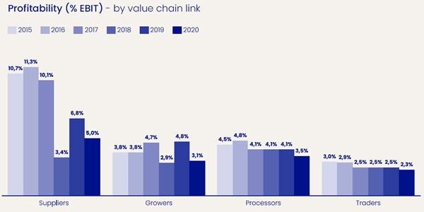 Er is niet alleen groei te zien. De toenemende complexiteit in de wet en regelgeving in de keten vergroot de druk op de marges voor vrijwel alle spelers. Met name de telers pakken hier de grootste klap. Tel daar de huidige tekorten van grondstoffen en de toenemende inflatie bij op, en het wordt voor hen steeds lastiger om te overleven.