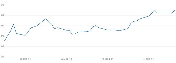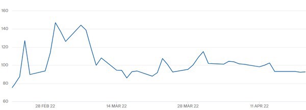 De gasprijs voor een winter 2022 op de Title Transfer Facility, het Nederlandse gashandelsplatform, tot en met 20 april. Klik hier voor de actuele gasprijzen.