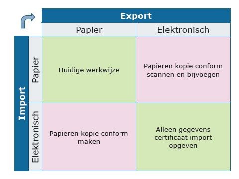 - Het importcertificaat is op papier, het re-exportcertificaat wordt elektronisch verstuurd