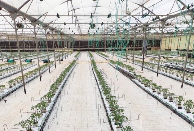 In de 2.000 m² grote kas worden gedurende 11 maanden per jaar tomaten op substraat geteeld. Daarnaast telen ze ook in korte cycli tomaten en komkommers in lage tunnels met een oppervlakte van 1.500 m².