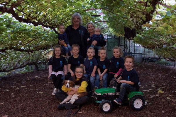 Arnold en Hilde met de kleinkinderen in de druivenkas