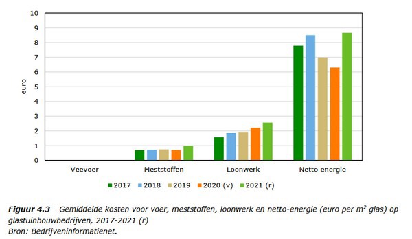 netto-energiekosten van 96% ten opzichte van 2021 voorzien. Gemiddeld makten de netto-energiekosten 14% van de kosten van telers uit de afgelopen jaren, met uitschieters naar 20%. Momenteel liggen de energiekosten op historisch hoge niveaus.