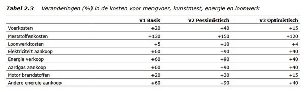 Verschillen in de toename van energiekosten gaan volgens onderzoekers van circa 2,50 euro per m2 voor de meest extensieve bedrijven tot meer dan 25 euro per m2 voor de meest intensieve. Effecten zullen hierbij tussen bedrijven verschillen doordat niet alle
