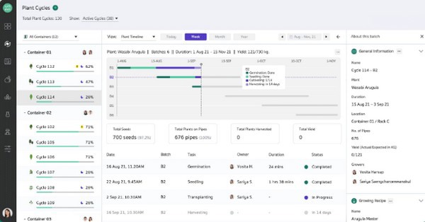 Het bedrijf heeft ook een vestiging in het centrum van Bangkok, waar ze verschillende planten telen, zoals eikenbladsla, rucola, boerenkool en microgroenten en teeltrecepten uittesten. "We testen verschillende gewassen, niet alleen degene die door ons team worden voorgesteld, maar ook die van klanten."